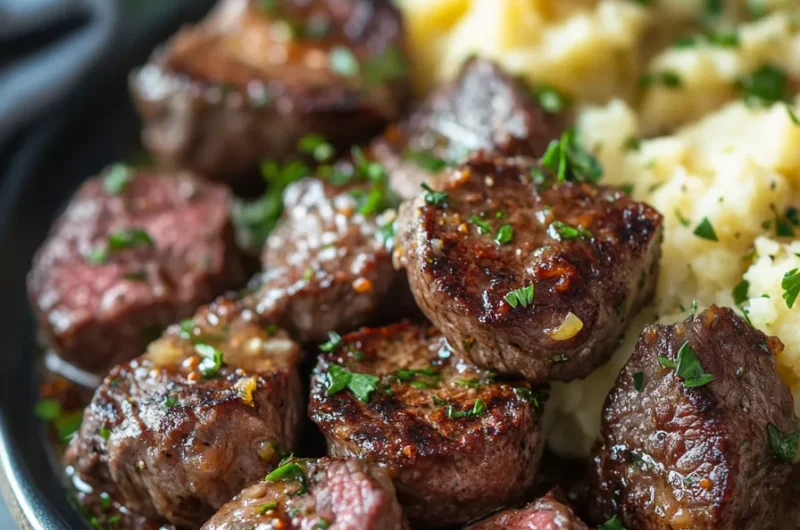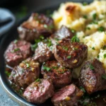 Garlic Butter Steak Bites and Cheesy Smashed Potatoes is an unforgettable dish that blends rich flavors with comforting textures. Whether you’re cooking for a family dinner or entertaining guests, this recipe is sure to impress. The savory garlic butter sauce enhances the juicy steak bites, while the cheesy smashed potatoes provide warmth and satisfaction. With easy-to-follow steps and the ability to customize flavors, this meal is a must-try for anyone looking to elevate their dining experience. Once you’ve savored this combination, you might find it becoming a staple on your dinner table!